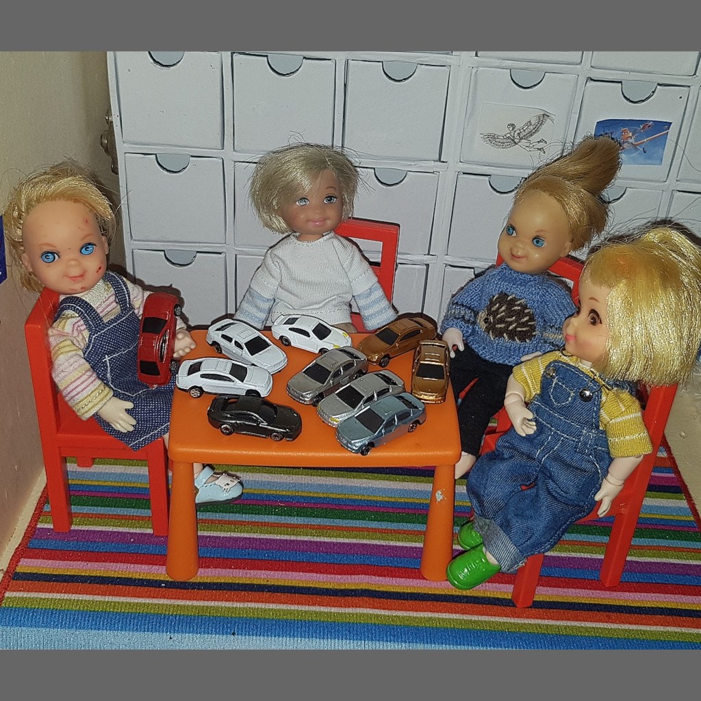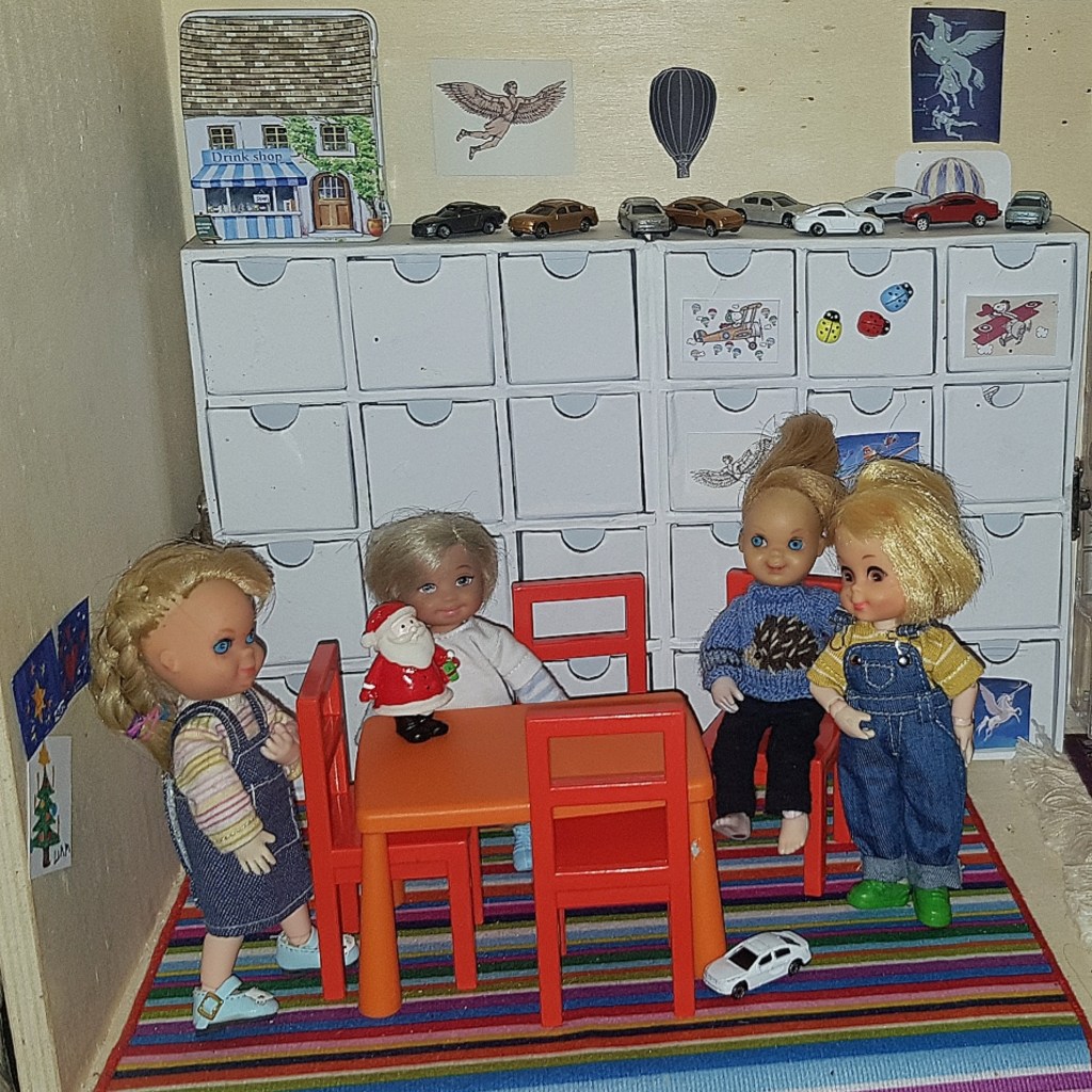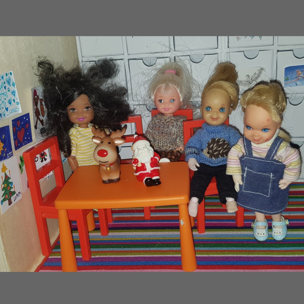 Afterwards they made new drawings. Kenzie suggested self portraits, and the others loved her idea. But suddenly Liam’s drawing was gone – must be the elf again.