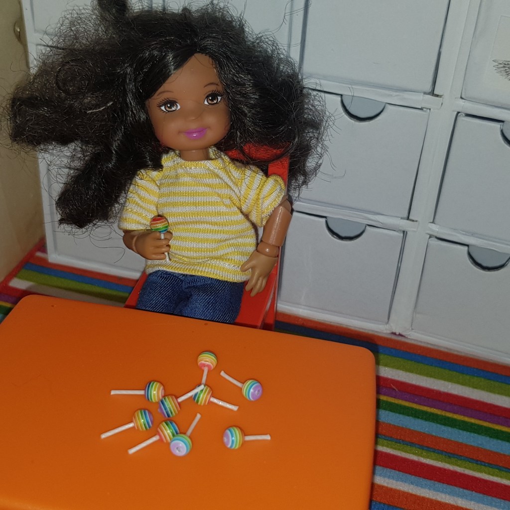 Elke brought some lollipops with her. Kenzie asked if she could have one.